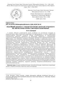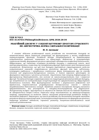 Релігійний дискурс у соціокультурному просторі сучасності як лінгвістична форма сакральної комунікації.