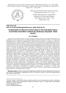 Поширення російської пропаганди в англомовних медіа: політично-релігійні аспекти (на прикладі видання «News Front»).