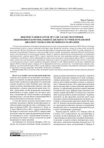Використання карток PECS як засобу підтримки іншомовної комунікативної діяльності учнів початкової школи в умовах інклюзивного навчання.