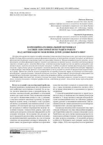 Корекційно-розвивальний потенціал засобів сенсорної інтеграції в роботі над активізацією мовлення дітей дошкільного віку.