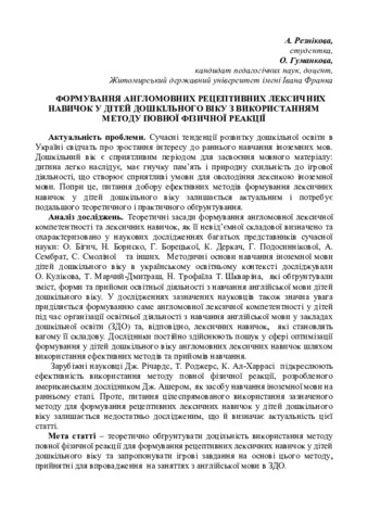 Формування англомовних рецептивних лексичних навичок у дітей дошкільного віку з використанням методу повної фізичної реакції