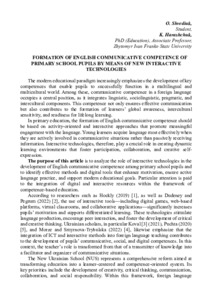 Formation of English Communicative Competence of Primary School Pupils by Means of New Interactive Technologies.