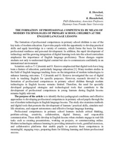 The Formation of Professional Competences by Means of Modern Technologies of Primary School Children at the English Language Lessons.