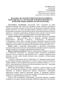 Практика реалізації технології інтерактивного навчання під час організації освітньої діяльності з навчання дошкільників англійської мови.