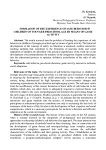 Formation of the Experience of Safe Behavior in Children of Younger Preschool Age by Means of Game Activity.