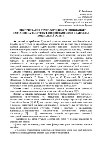 Використання технології диференційованого навчання на заняттях з англійської мови в закладах дошкільної освіти