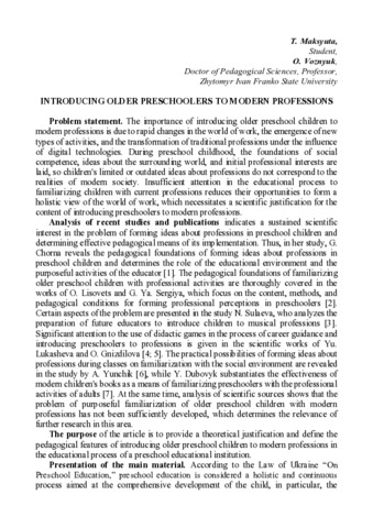 Introducing Older Preschoolers to Modern Professions.