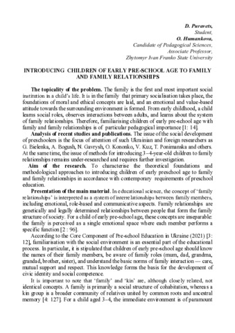 Introducing Children of Early Pre-school Age to Family and Family Relationships.