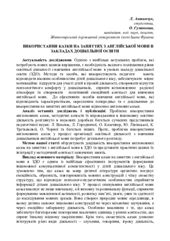 Використання казки на заняттях з англійської мови в закладах дошкільної освіти