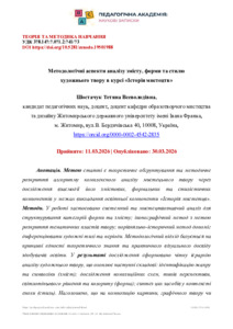 Методологічні аспекти аналізу змісту, форми та стилю художнього твору в курсі «Історія мистецтв».