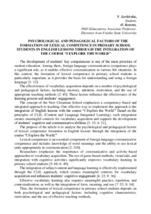 Psychological and Pedagogical Factors of the Formation of Lexical Competence in Primary School Students in English Lessons through the Integration of the Course “I Explore the World”