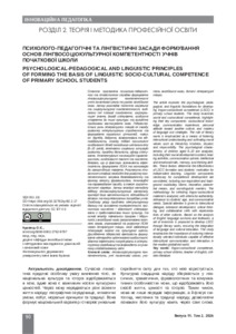 Психолого-педагогічні та лінгвістичні засади формування основ лінгвосоціокультурної компетентності учнів початкової школи