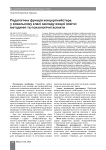 Педагогічна функція концертмейстера у вокальному класі закладу вищої освіти: методичні та психологічні аспекти