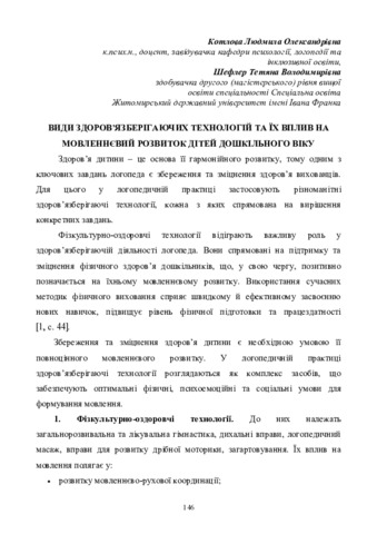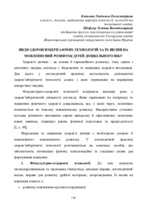 Види здоров’язберігаючих технологій та їх вплив на мовленнєвий розвиток дітей дошкільного віку.
