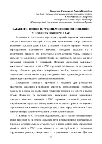 Характерні прояви порушень мовленнєвої поведінки молодших школярів з РАС.