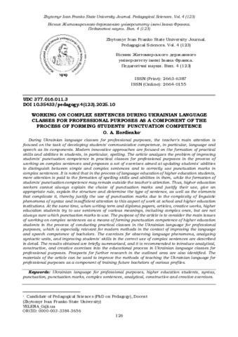 Working on Complex Sentences During Ukrainian Language Classes for Professional Purposes as a Component of The Process of Forming Students' Punctuation Competence.
