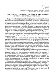 Кравчук Л. М., Кравець О. Є.ORCID: https://orcid.org/0000-0002-2762-9787 (2026) Fostering Success among Elementary School Students in the Process of Learning English. In: VІІІ Всеукраїнська студентська науково-практична Інтернет-конференція «Сучасні тенденції та інновації у викладанні іноземних мов за професійним спрямуванням», 20–24 квітня 2026 р., Житомир. С. 1–3.