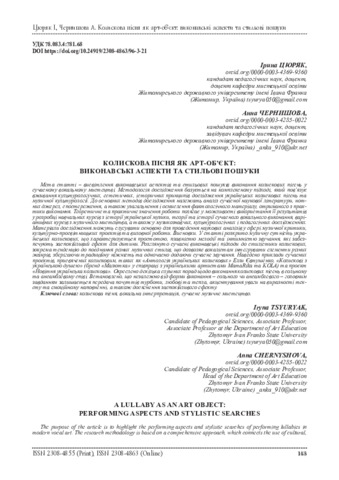 Колискова пісня як арт-об’єкт: виконавські аспекти та стильові пошуки.
