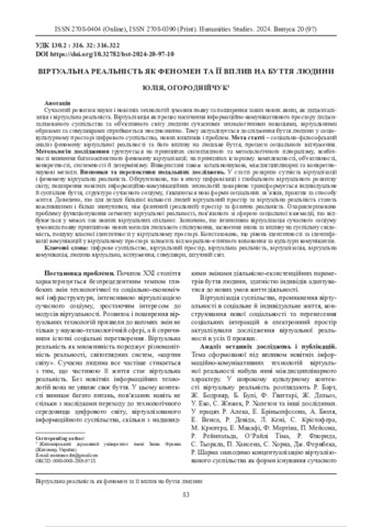 | ДСТУ 8302:2015: | Огороднійчук Ю. Й. Віртуальна реальність як феномен та її вплив на буття людини. Humanities Studies. 2024. № 97. С. 83–92. DOI: 10.32782/hst-2024-20-97-10. |