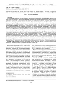 Віртуальна реальність як феномен та її вплив на буття людини.