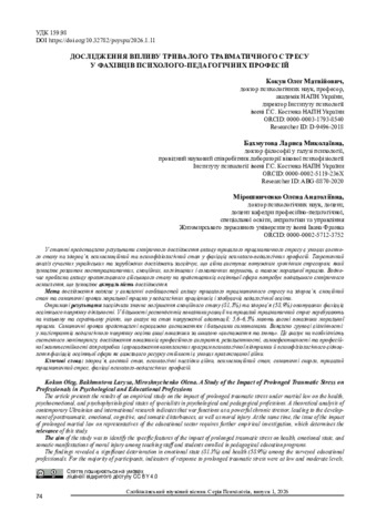 Дослідження впливу тривалого травматичного стресу у фахівців психолого-педагогічних професій.