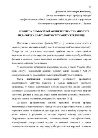 Розвиток професійної компетентності майбутніх педагогів у цифровому освітньому середовищі.